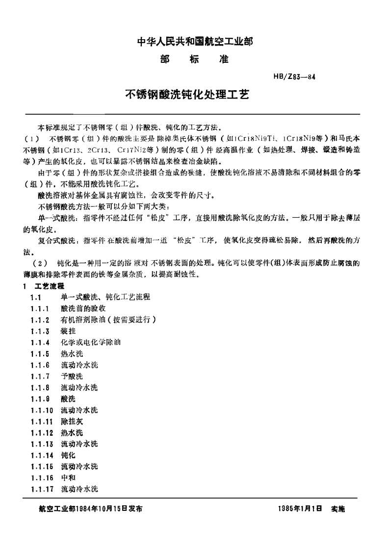 不锈钢管酸洗钝化处理工艺348072@abc4个月前发布关注私信0.24MB8页045不锈钢管酸洗钝化处理工艺此内容为付费资源,请付费后查看¥14¥24黄金会员免费钻石会员免费立即购买您当前未登录!建议登陆后购买,可保存购买订单付费资源 第1页 / 共8页 第2页 / 共8页 试读已结束,还剩6页,您可下载完整版后进行离线阅读 THE END标准规范 文本预览 HB中华人民共和国航空工业鄙部标准HB/Z83-84不锈钢酸洗钝化处理工艺1984-10-15发布1985-1-01实施中华人民共和国航空工业部:批准 查看更多 收起部分 喜欢就支持一下吧收藏