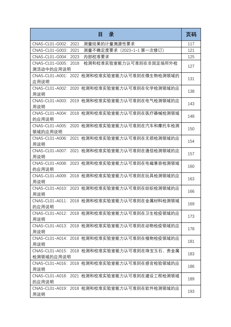 目录页码一、实验室相关服务项目一览表Al1、CMA认证、CNAS认可辅导内容A22、实验室信息化管理系统(LIMS系统)A23、实验室方法开发、方法验证、方法确认A34、实验室设计、装修、建设A35、实验室及设备搬迁A46、二手仪器和仪器租赁A47、实验室培训服务A48、试剂、耗材、标准物质A79、仪器校准、检测分包A710、实验室特色定制服务A811、体系托管服务A9二、检验检测机构资质认定(CMA认证)相关标准和文件1检验检测机构资质认定管理办法(国家市场监督管理总局令第163号)2检验检测机构资质认定评审准则(国家市场监督管理总局2023年第21号)8附件1:检验检测机构资质认定现场评审工作程序12附件2:检验检测机构资质认定书面审查工作程序21附件3:检验检测机构资质认定远程评审工作程序22附件4:《检验检测机构资质认定评审准则》一般程序审查(告知承诺核查)表26检验检测机构监督管理办法(国家市场监督管理总局令第39号)32《检验检测机构能力验证管理办法》(市场监管总局2023年第13号)】36RB/T214-2017检验检测机构资质认定能力评价检验检测机构通用要求39GB/T27025-2019检测和校准实验室能力认可准则501S01EC17025:2017检测和校准实验室能力认可准则50《检验检测机构资质认定环境监测机构评审补充要求》(国市监检测〔2018]245号)51《食品检验机构资质认定条件》(食药监科〔2016]106号)56《医疗器械检验机构资质认定条件》(食药监科〔2015】249号)61《检验检测机构资质认定刑事技术机构评审补充要求》(国认实〔2016)71号)64《人防工程防护设备检测机构专项要求》(国人防〔2017)271号)68《进出口商品检验机构资质认定准入特别条件》国市监检测规〔2022]1号71《机动车检验机构资质认定评审补充技术要求》(市监检测发〔2022)111号)74《法医类物证类声像资料司法鉴定机构登记评审细则》80《环境损害司法鉴定机构登记评审细则》84《检验检测机构资质认定标志及其使用要求》(国认实〔2015)50号)86《检验检测机构资质认定检验检测专用章使用要求》(国认实〔2015)50号】88三、检测和校准实验室CNAS认可相关文件89CNAS-CL01:2018检测和校准实验室能力认可准则90CNAS-CL01-G001:2018CNAS-CL01《检测和校准实验室能力认可准则》应用要求109