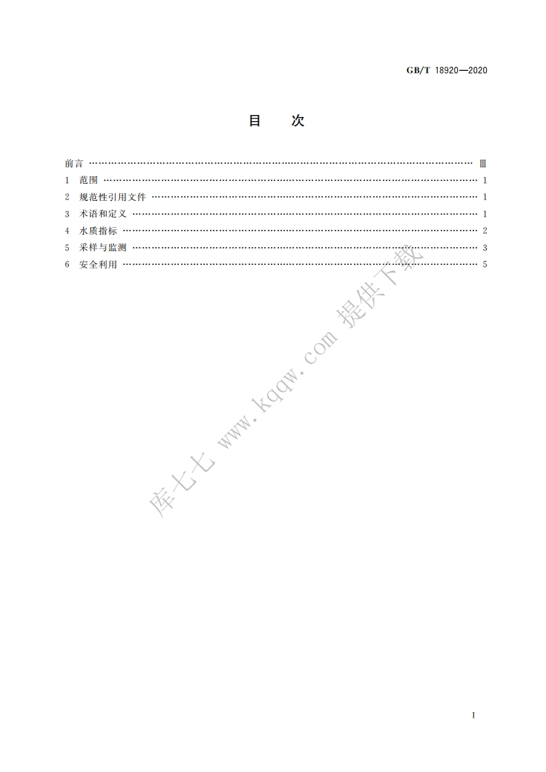 城市污水再利用348072@abc4个月前发布关注私信0.53MB8页037城市污水再利用此内容为付费资源,请付费后查看¥14¥24黄金会员免费钻石会员免费立即购买您当前未登录!建议登陆后购买,可保存购买订单付费资源 第1页 / 共8页 第2页 / 共8页 试读已结束,还剩6页,您可下载完整版后进行离线阅读 THE END标准规范 文本预览 ICS13.060P40中华人民共和国国家标准GB/T18920-2020代替GB/T18920一2002城市污水再生利用城市杂用水水质The reuse of urban recycling water-Water quality standard for urban miscellaneous use2020-03-31发布2021-02-01实施国家市场监督管理总局发布国家标准化管理委员会 查看更多 收起部分 喜欢就支持一下吧收藏