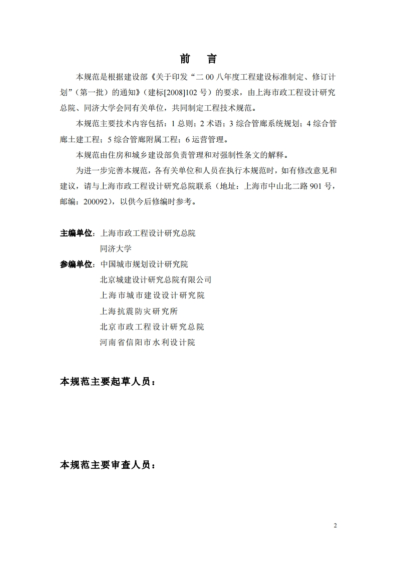 城市综合管廊工程技术规范(征求意见稿)348072@abc4个月前发布关注私信0.82MB65页021城市综合管廊工程技术规范(征求意见稿)此内容为付费资源,请付费后查看¥14¥24黄金会员免费钻石会员免费立即购买您当前未登录!建议登陆后购买,可保存购买订单付费资源 第1页 / 共65页 第2页 / 共65页 试读已结束,还剩63页,您可下载完整版后进行离线阅读 THE END标准规范 文本预览 UDC中华人民共和国国家标准GBPGBXXX X-X XXX城市综合管廊工程技术规范Code for Urban municipal tunnel Engineering(征求意见稿)XXXx-Xx-Xx发布XXXX一XX-XX实施中华人民共和国住房和城乡建设部联合发布中华人民共和国国家质量监督检验检疫总局 查看更多 收起部分 喜欢就支持一下吧收藏