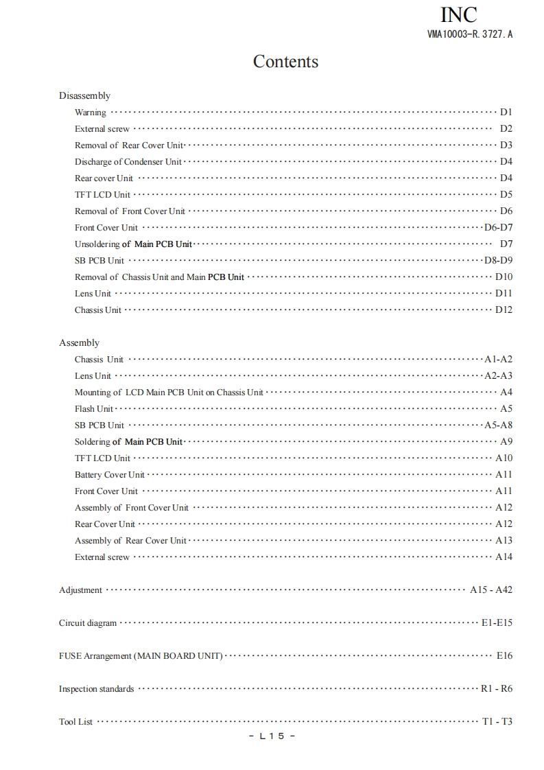 尼康NIKONCoolpixL15数码相机维修手册348072@abc3个月前发布关注私信12.11MB80页025尼康NIKONCoolpixL15数码相机维修手册此内容为付费资源,请付费后查看¥22¥32黄金会员免费钻石会员免费立即购买您当前未登录!建议登陆后购买,可保存购买订单付费资源 第1页 / 共80页 第2页 / 共80页 试读已结束,还剩78页,您可下载完整版后进行离线阅读 THE END说明书手册 文本预览 INCVWMA10003-R.3727.A作成承認印配布許可印GMNikonCOOLPIX LI5VMA10003REPAIR MANUALONIKON CORPORATIONTokyo.JapanCopyr igh 2007 by Nikon Corporation.AlI Rights Reserved.無断転載左禁寸!!Pr inted in Japan SEP 2007 查看更多 收起部分 喜欢就支持一下吧收藏