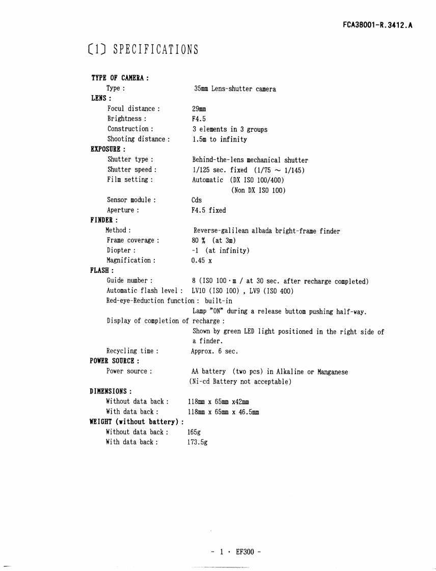 FCA38001-R.3412.A作成承認印配布許可印CS推迷部GMEF300FCA38001EF 300 QDFCA38201Nice Touch 4FCA38101Nice Touch 4 QDFCA38301REPAIR MANUALNiKOn NIKON CORPORATIONTokyo,JapanCopyrightC1996 by Nikon Corporation.All Rights Reserved.Printed in Japan September 1996
