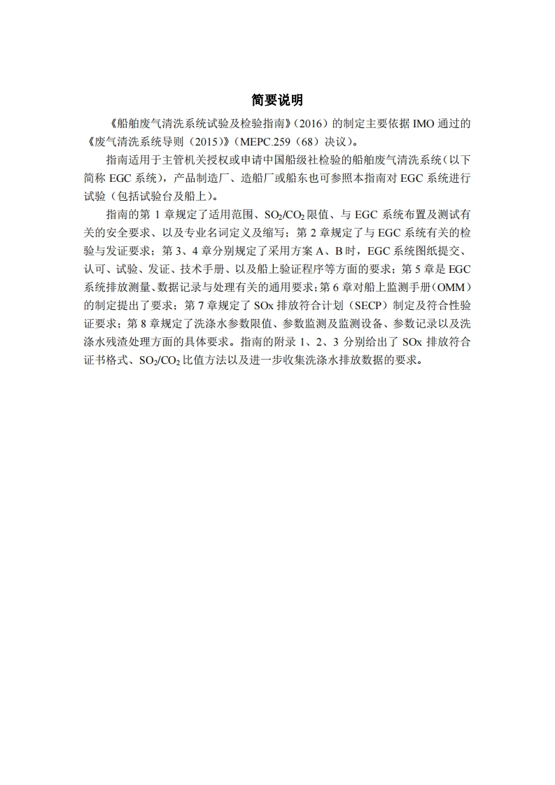 船舶废气清洗系统试验及检验指南(2016)348072@abc4个月前发布关注私信0.33MB29页024船舶废气清洗系统试验及检验指南(2016)此内容为付费资源,请付费后查看¥14¥24黄金会员免费钻石会员免费立即购买您当前未登录!建议登陆后购买,可保存购买订单付费资源 第1页 / 共29页 第2页 / 共29页 试读已结束,还剩27页,您可下载完整版后进行离线阅读 THE END标准规范 文本预览 指导性文件GUIDANCE NOTESGD25-2016船中国船级社船舶废气清洗系统试验及检验指南2016生效日期:2016年10月10日北京 查看更多 收起部分 喜欢就支持一下吧收藏