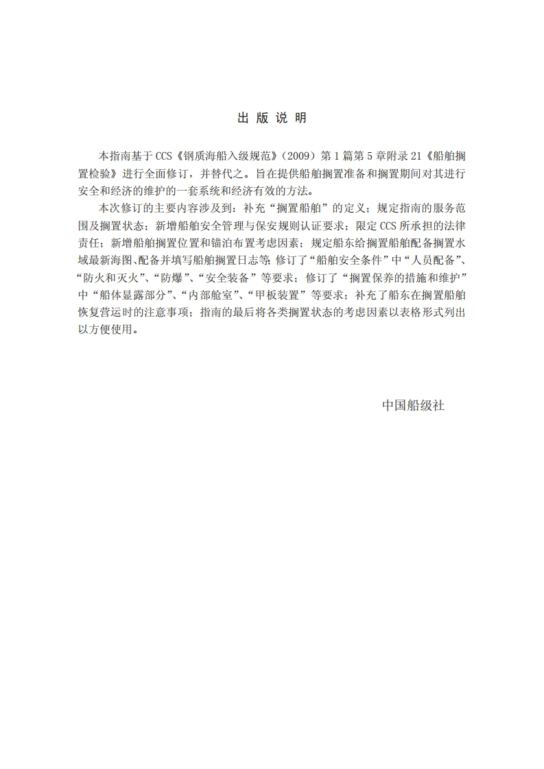船舶搁置指南2009348072@abc6个月前发布关注私信0.35MB25页024船舶搁置指南2009此内容为付费资源,请付费后查看¥14¥24黄金会员免费钻石会员免费立即购买您当前未登录!建议登陆后购买,可保存购买订单付费资源 第1页 / 共25页 第2页 / 共25页 试读已结束,还剩23页,您可下载完整版后进行离线阅读 THE END标准规范 文本预览 的级指导性文件GUIDANCE NOTESGD05-2009CHINASOCIETYCLASSIFICATIONS中国船级社船舶搁置指南GUIDELINES FOR LAY-UP OF SHIPS20092010年1月1日实施Effective from January 1 2010北京 查看更多 收起部分 喜欢就支持一下吧收藏