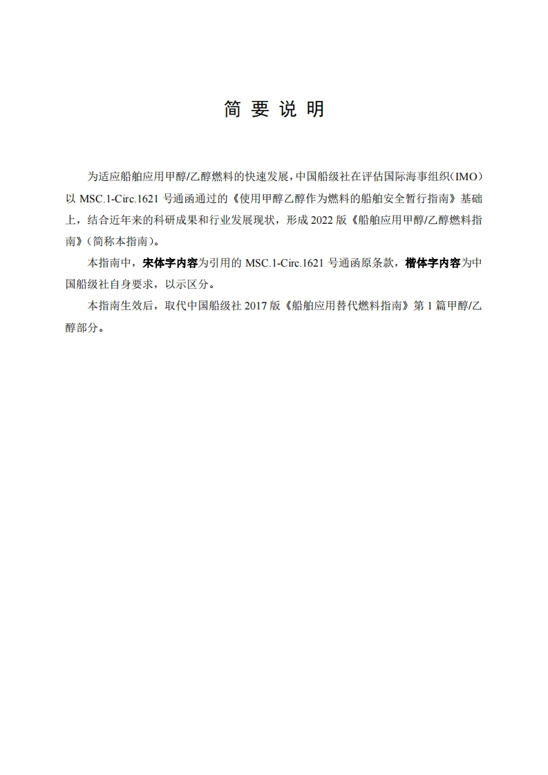 船舶应用甲醇乙醇燃料指南2022348072@abc3个月前发布关注私信2.54MB64页037船舶应用甲醇乙醇燃料指南2022此内容为付费资源,请付费后查看¥14¥24黄金会员免费钻石会员免费立即购买您当前未登录!建议登陆后购买,可保存购买订单付费资源 第1页 / 共64页 第2页 / 共64页 试读已结束,还剩62页,您可下载完整版后进行离线阅读 THE END标准规范 文本预览 指导性文件GUIDANCE NOTES国船级GD16-2022社★CLASSIFICATION中国船级社船舶应用甲醇/乙醇燃料指南20222022年7月1日生效北京 查看更多 收起部分 喜欢就支持一下吧收藏