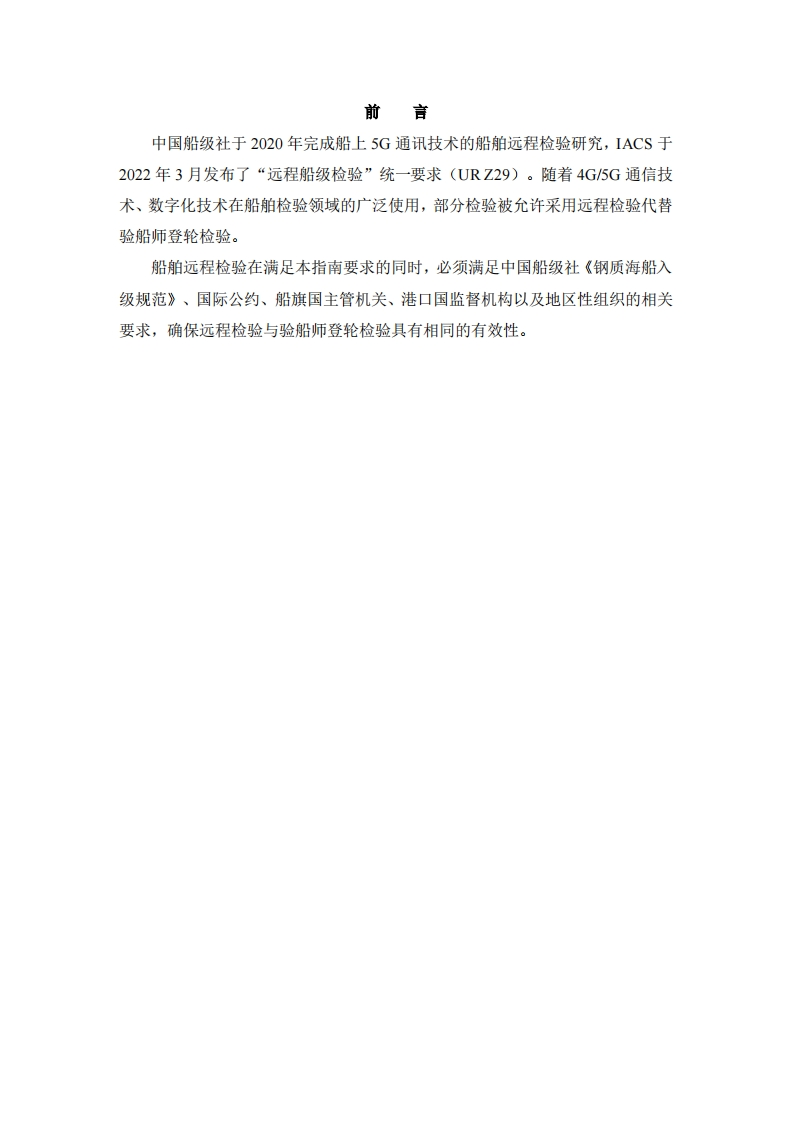 船舶远程检验指南(2023)_CLN348072@abc3个月前发布关注私信0.47MB13页020船舶远程检验指南(2023)_CLN此内容为付费资源,请付费后查看¥14¥24黄金会员免费钻石会员免费立即购买您当前未登录!建议登陆后购买,可保存购买订单付费资源 第1页 / 共13页 第2页 / 共13页 试读已结束,还剩11页,您可下载完整版后进行离线阅读 THE END标准规范 文本预览 指导性文件GUIDANCE NOTESGD31-2023国船中级★★CLASSIFICATION SO中国船级社船舶远程检验指南GUIDELINES FOR SHIP REMOTE SURVEYS20232023年7月1日生效Effective from 1 July 2023北京Beijing 查看更多 收起部分 喜欢就支持一下吧收藏