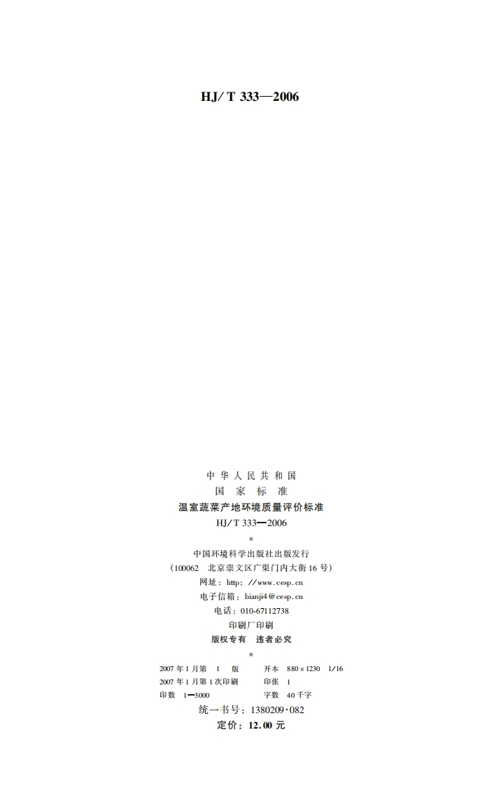 温室蔬菜场地环境质量评价标准HJT333-2006348072@abc4个月前发布关注私信0.55MB12页030温室蔬菜场地环境质量评价标准HJT333-2006此内容为付费资源,请付费后查看¥15¥27黄金会员免费钻石会员免费立即购买您当前未登录!建议登陆后购买,可保存购买订单付费资源 第1页 / 共12页 第2页 / 共12页 试读已结束,还剩10页,您可下载完整版后进行离线阅读 THE END标准规范 文本预览 中华人民共和国国家标准HJ/T333-2006温室蔬菜产地环境质量评价标准Environmental quality evaluation standardsfor farmland of greenhouse vegetables production2006-11-17发布2007-02-01实施国家环境保护总局发布 查看更多 收起部分 喜欢就支持一下吧收藏