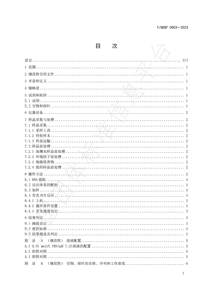 ICS65.150CCS B 50TGDSF广东水产学会团体标准T/GDSF0003-2023罗非鱼无乳链球菌和海豚链球菌双重荧光PCR检测方法Duplex Real-time PCR Method for the Detection of Streptococcus agalactiae andStreptococcus iniae in Tilapia国团2023-9-4发布2023-9-5实施广东水产学会发布