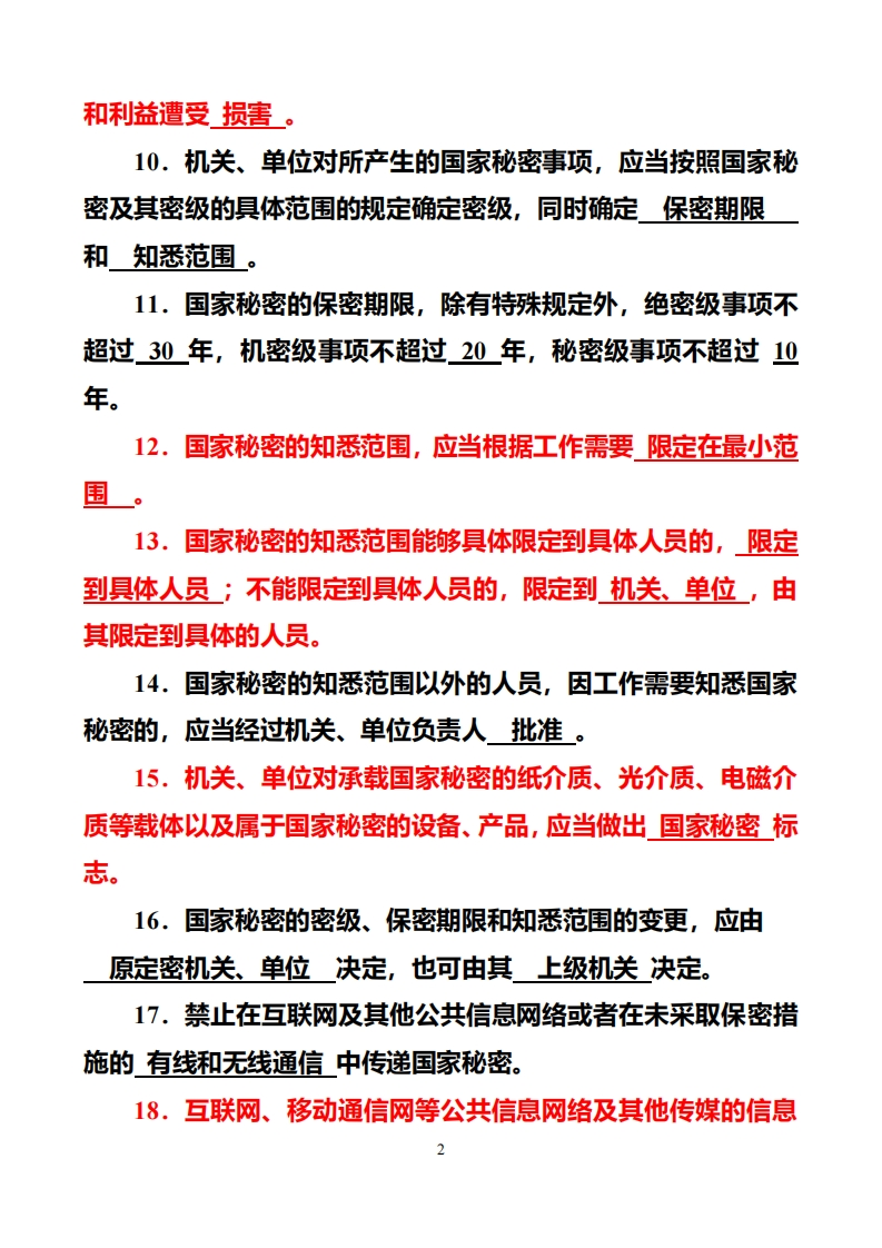 保密测试式题库(答案版)一、填空题(共80题1.《中华人民共和国宪法》第五十三条规定,中华人民共和国公民必须遵守宪法和法律,保守国家秘密,爱护公共财产,遵守劳动纪律,遵守公共秩序,尊重社会公德。2.《中华人民共和国保守国家秘密法》由中华人民共和国第11届全国人民代表大会常务委员会第十四次会议于2010年4月29日修订通过,自2010年10月1日起施行。3.国家秘密是指关系国家的安全和利益,依照法定程序确定,在一定时间内只限一定范围的人员知悉的事项。4.保守国家秘密的工作,实行积极防范、突出重点、依法管理的方针,既确保国家秘密安全,又便利信息资源合理利用。5.机关、单位应当实行保密工作责任制,健全保密管理制度,完善保密防护措施,开展保密宣传教育,加强保密检查。6.国家秘密的密级分为绝密、机密、秘密三级。7.绝密级国家秘密是最重要的国家秘密,泄露会使国家安全和利益遭受特别严重的损害。8.机密级国家秘密是重要的国家秘密,泄露会使国家安全和利益遭受严重的损害9.秘密级国家秘密是一般的国家秘密,泄露会使国家安全