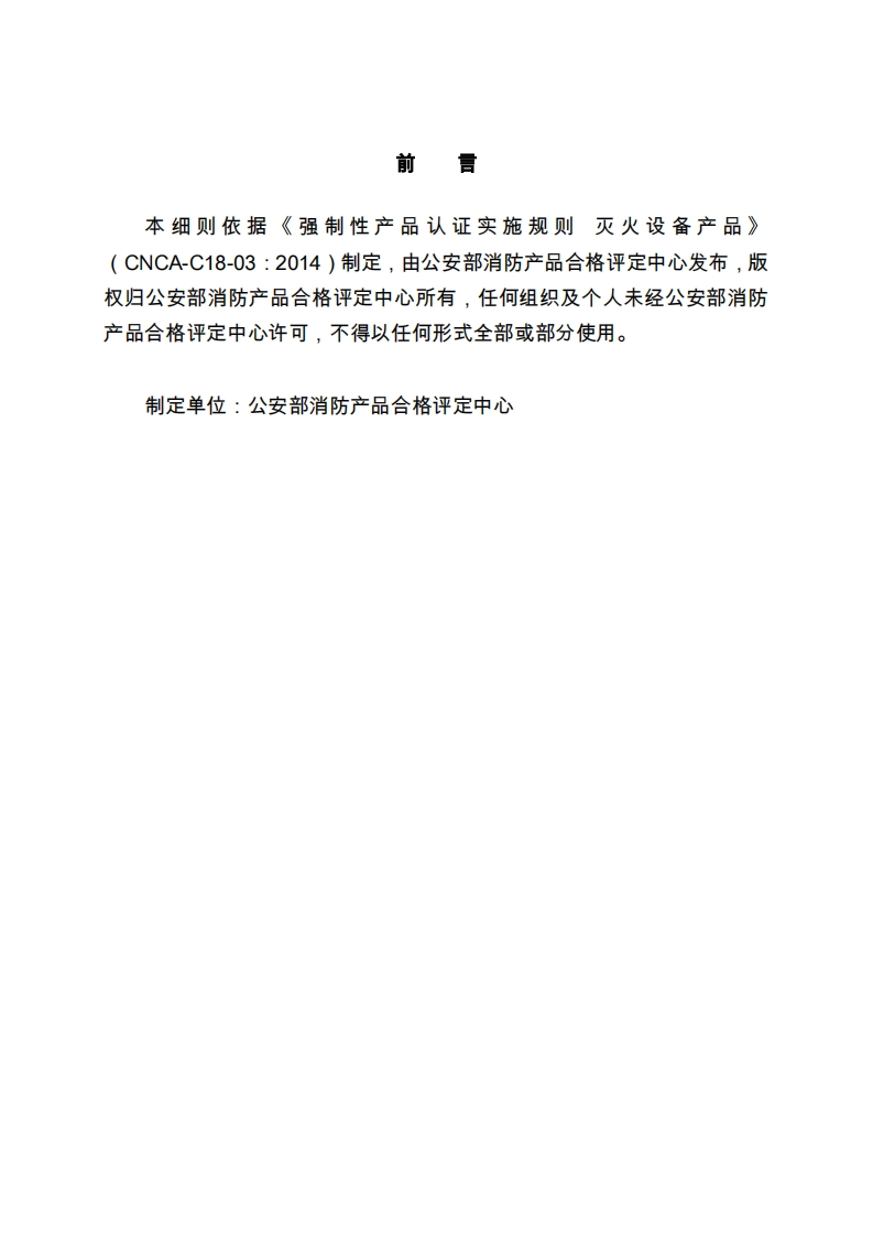 消防给水设备产品(二)强制性认证实施细则348072@abc4个月前发布关注私信0.74MB55页043消防给水设备产品(二)强制性认证实施细则此内容为付费资源,请付费后查看¥15¥27黄金会员免费钻石会员免费立即购买您当前未登录!建议登陆后购买,可保存购买订单付费资源 第1页 / 共55页 第2页 / 共55页 试读已结束,还剩53页,您可下载完整版后进行离线阅读 THE END标准规范 文本预览 编号:CCCF-MHSB-09(A0)强制性产品认证实施细则灭火设备产品消防给水设备产品(二)2014-08-31发布2014-09-01实施公安部消防产品合格评定中心 查看更多 收起部分 喜欢就支持一下吧收藏