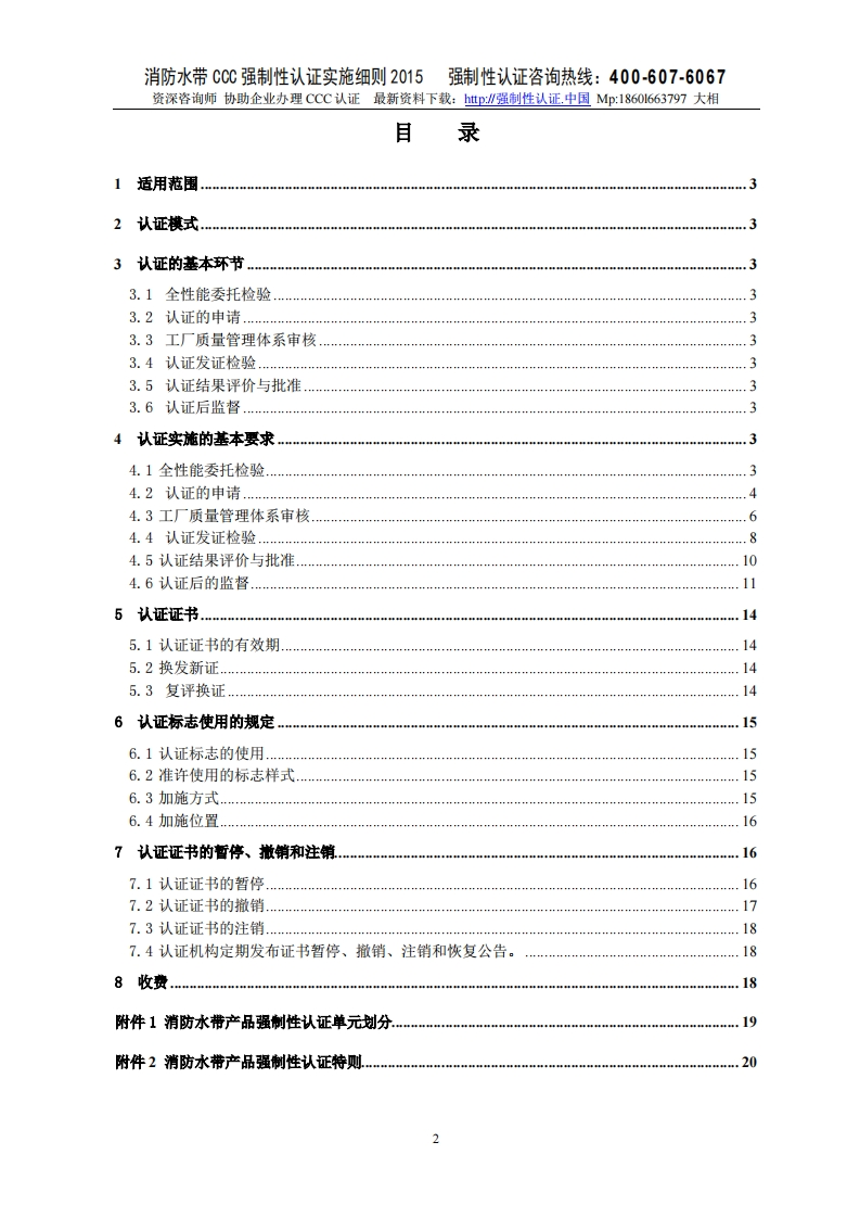 消防水带CCC强制性认证实施细则2015版348072@abc4个月前发布关注私信0.45MB50页033消防水带CCC强制性认证实施细则2015版此内容为付费资源,请付费后查看¥15¥27黄金会员免费钻石会员免费立即购买您当前未登录!建议登陆后购买,可保存购买订单付费资源 第1页 / 共50页 第2页 / 共50页 试读已结束,还剩48页,您可下载完整版后进行离线阅读 THE END标准规范 文本预览 消防水带CCC强制性认证实施细则2015强制性认证咨询热线:400-607-6067资深咨询师协助企业办理CCC认证最新资料下载:hp∥/强制性认证.中国Mp:18601663797大相编号:CNCA-09C045:2001消防产品类强制性认证实施规则消防水带2001-12-07发布2002-05-01实施中国国家认证认可监督管理委员会发布 查看更多 收起部分 喜欢就支持一下吧收藏