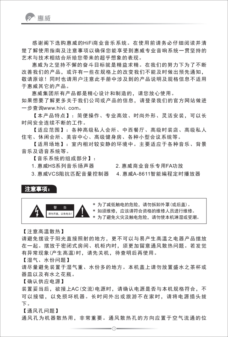 hivi惠威FA系列(FA-60FA-120)-使用说明书手册348072@abc6个月前发布关注私信2.37MB8页030hivi惠威FA系列(FA-60FA-120)-使用说明书手册此内容为付费资源,请付费后查看¥14¥24黄金会员免费钻石会员免费立即购买您当前未登录!建议登陆后购买,可保存购买订单付费资源 第1页 / 共8页 第2页 / 共8页 试读已结束,还剩6页,您可下载完整版后进行离线阅读 THE END说明书手册 文本预览 FA-60/FA-120专业音频放大器产品说明书HVI PROFESSIONAL DIGITAL CONTROLLED AMPLIFIER FA-GOOm00⑨98○www.hivi.com 查看更多 收起部分 喜欢就支持一下吧收藏