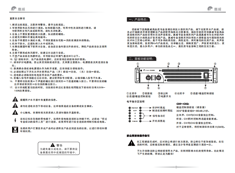 惠威音频功率放大器FA系列出出出9HM惠威黄国HiV Acoustics,Inc.11630 Goldring Road,Aecadia.CA 91006.USAT6+16269300e08Fx:+162893008092HM真威中国珠商西藏科技有限公司广东省底海市联港工业区大林山片区东成路南1号电话:0766-6265036传真:0756-6208005.626B052畜户图务热线:400-000-9199产品说明书www.hivi.com&o际高奇不流不2 maton contane4 er may not1in conformity with product itsel.We reserve the right of no prior notice before change.