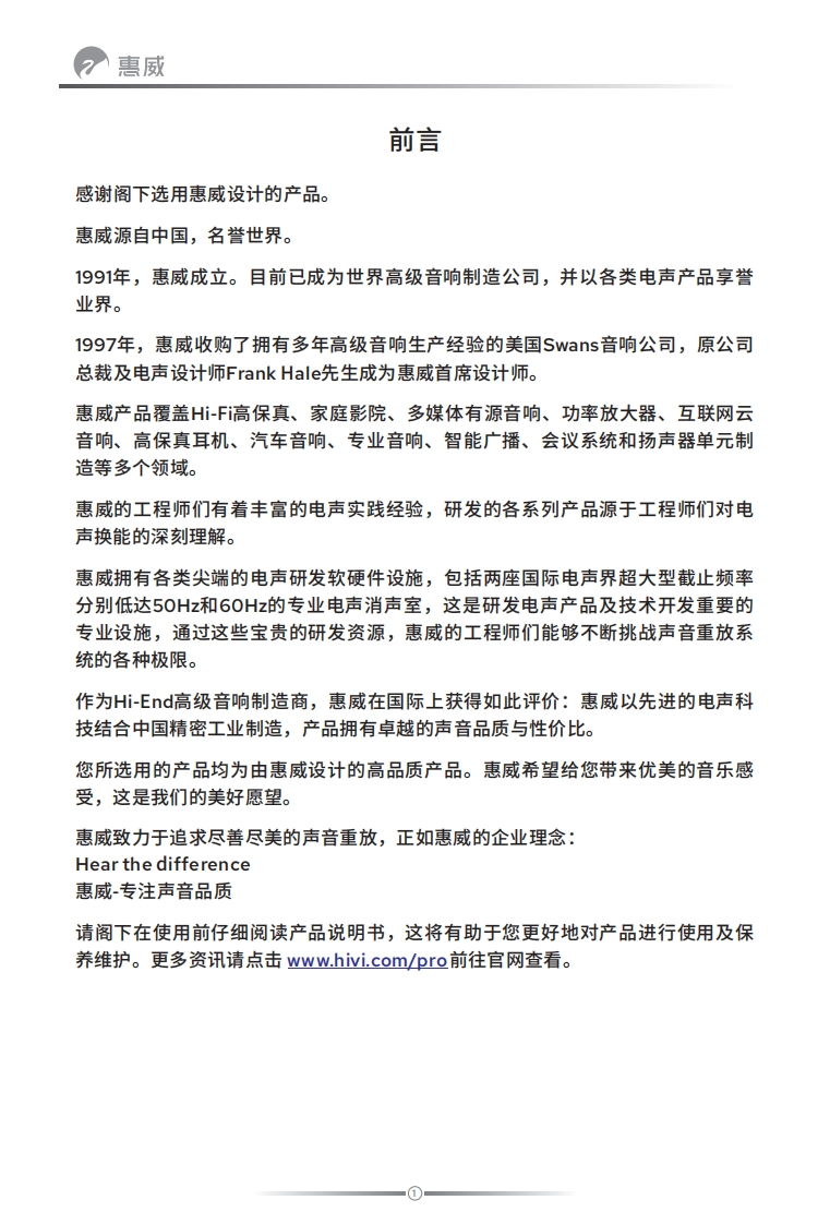 hivi惠威HQ系列(HQ1HQ2HQ3)-使用说明书手册348072@abc6个月前发布关注私信0.63MB6页031hivi惠威HQ系列(HQ1HQ2HQ3)-使用说明书手册此内容为付费资源,请付费后查看¥14¥24黄金会员免费钻石会员免费立即购买您当前未登录!建议登陆后购买,可保存购买订单付费资源 第1页 / 共6页 第2页 / 共6页 试读已结束,还剩4页,您可下载完整版后进行离线阅读 THE END说明书手册 文本预览 2HQ系列专业音箱产品说明书www.hivi.com 查看更多 收起部分 喜欢就支持一下吧收藏