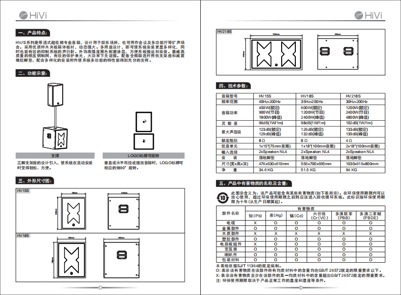 惠威专业音箱(HV/S SERIES MANUAL)M南威美国HM Acoustics.he.11530 Goldring Road ArcadiaCA 91006USATCt+162E9300E06F3+16269300E09M南威中国珠海惠蓝料技有限公同广东省珠海市联纯工业区大林体山片区东成路南号电话:0W5662680B5传离:07王-6正80066268052客户服务病线:40002091田产品说明书www.hivi.com女因计变更等原因,所示资料可能与亮物不符,想不另通知。in conformity with product itsel We reserve the right ofno prar nodioe bdore change.