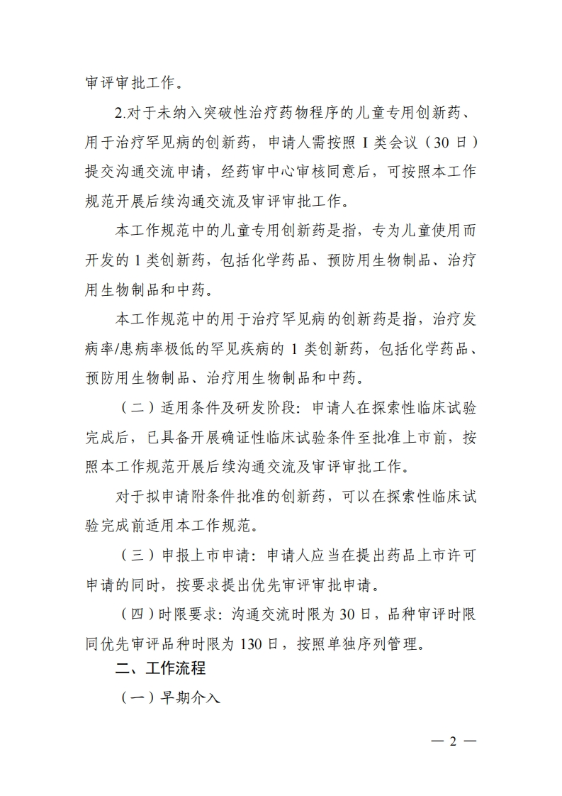 附件药审中心加快创新药上市许可申请审评工作规范(试行)为鼓励研究和创制新药,满足临床用药需求,结合抗疫应急审评过程中“早期介入、研审联动、滚动提交”等宝贵经验及监管科学行动计划形成的新工具、新方法、新标准,以制度形式转化、巩固和扩大抗疫成果,鼓励儿童用药、罕见病用药创新研发进程,加快创新药品种审评审批速度,结合《国家药监局关于发布〈突破性治疗药物审评工作程序(试行)〉等三个文件的公告》(2020年第82号)、《药物研发与技术审评沟通交流管理办法》以及科学管理体系建设相关要求,制定本工作规范。一、适用范围及审评时限(一)适用范围:儿童专用创新药、用于治疗罕见病的创新药以及纳入突破性治疗药物程序的创新药,特别审评审批品种除外。1对于纳入突破性治疗药物程序的创新药,申请人应按照本工作规范要求提出沟通交流申请及上市许可申请,无需额外提出纳入本工作规范的申请。如相关创新药被取消突破性治疗药物资格,则不能再按照本工作规范开展沟通交流及一1