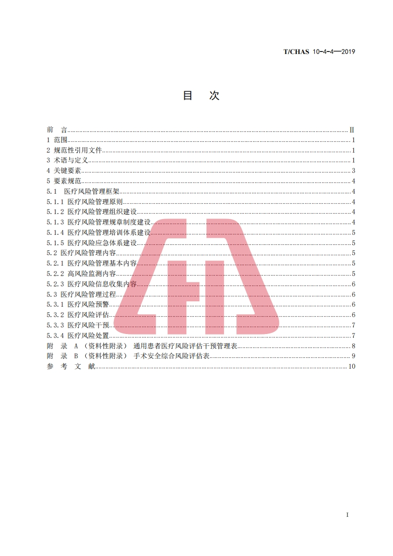 医疗管理医疗风险管理348072@abc3个月前发布关注私信1.01MB13页026医疗管理医疗风险管理此内容为付费资源,请付费后查看¥12¥22黄金会员免费钻石会员免费立即购买您当前未登录!建议登陆后购买,可保存购买订单付费资源 第1页 / 共13页 第2页 / 共13页 试读已结束,还剩11页,您可下载完整版后进行离线阅读 THE END标准规范 文本预览 ICS11.020C07团体标淮T/CHAS10-4-4-2019中国医院质量安全管理第4-4部分:医疗管理医疗风险管理Quality and safety management of Chinese hospital-Part 4-4:Medical management-medical risk management2019-07-06发布2019-12-1实施中国医院协会发布 查看更多 收起部分 喜欢就支持一下吧收藏