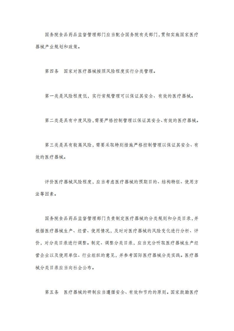 医疗器械监督管理条例(2017修订)医疗器械监督管理条例(2000年1月4日中华人民共和国国务院令第276号公布2014年2月12日国务院第39次常务会议修订通过根据2017年5月4日《国务院关于修改〈医疗器械监督管理条例〉的决定》修订)第一章总则第一条为了保证医疗器械的安全、有效,保障人体健康和生命安全,制定本条例。第二条在中华人民共和国境内从事医疗器械的研制、生产、经营、使用活动及其监督管理,应当遵守本条例。第三条国务院食品药品监督管理部门负责全国医疗器械监督管理工作。国务院有关部门在各自的职责范围内负责与医疗器械有关的监督管理工作。县级以上地方人民政府食品药品监督管理部门负责本行政区域的医疗器械监督管理工作。县级以上地方人民政府有关部门在各自的职责范围内负责与医疗器械有关的监督管理工作。