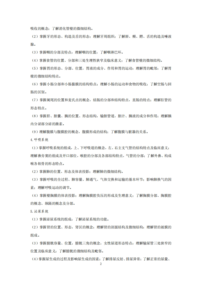 医学技术类专业知识考试标准一、考试范围和要求知识模块1.人体解剖生理学基础1.人体的基本结构与功能(1)掌握常用的解剖学方位术语、生命活动的基本特征。(2)掌握人体功能活动的调节:理解机体与环境:了解稳态。(3)掌握细胞的结构和细胞膜的物质转运功能:了解主要细胞器的功能。(4)掌握静息电位和动作电位的概念:理解静总电位和动作电位的产生机制。(5)掌握被覆上皮的分类和分布:理解被覆上皮的特点:了解腺上皮和腺。(6)掌握结缔组织的分类、疏松结缔组织的组成及功能:理解致密结缔组织、脂肪组织和网状组织的组成及功能:理解软骨组织和骨组织。(7)掌握血液的组成、血浆渗透压形成及影响因素,血细胞的正常值、形态结构及功能:了解血细胞的生成的部位和一般过程。(8)掌握血液凝固的基本步骤、AB0血型分型及依据、输血原则:理解贴血型系统:了解纤溶系统。(9)掌握肌组织的分类:了解骨骼肌、心肌和平滑肌的结构特点。(10)掌握突触的结构与分类:理解神经元结构、分类:了解神经胶质细胞、神经末梢的分类及功能。(11)理解皮肤的组织结构和附属器。2.运动系统(1)掌握全身各骨的名称、位置及主要骨性标志:理解运动系统的组成,骨的形态和构造,椎骨、胸骨、肩胛骨、肱骨、尺骨、桡骨、髂骨、股骨、胫骨、颅骨的主要形态特点。(2)掌握关节的基本结构和运动,椎骨间连接,肩关节、髋关节、膝关节、肘关节的组成及特点,胸廓的组成、整体观及运动,骨盆的组成、分界及男女骨盆区别:理解关节的辅助结构,腕关节、踝关节、颞下颌关节的组成及特点:了解足弓的结构及功能。(3)掌握骨骼肌的构造,膈的位置、形态特点与功能:理解骨骼肌的辅助结构、腹肌及腹肌形成的特殊结构:了解主要躯干肌、四肢肌的位置及作用。3.消化系统(1)掌握消化系统的组成,上、下消化道的概念,胸部的标志线和腹部分区:掌握消化、