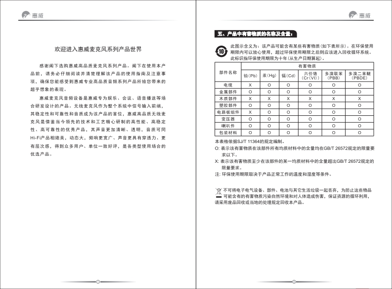 无线麦克风扫码关注惠威集团公众号MV2000-H2 WIRELESS MICROPHONE注鼎产品即享保修日任心一设i计Des灯n:害威制透角M为nutactuter:珠海无暖科技有裙公司地址Ad山ess:珠海市联港工业区东成路南1号产品说明书电话Tel400-090-999www.hivi.com章因设计变更等原因,所尔资料可陶与卖物木行,忽不另行通记。Due to the reasons in the change of design or othera,product information contained here mary not bein conformity with produet itselt We reserve the right of no priar notice before change.