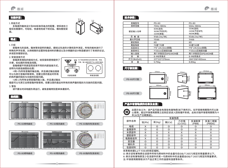 可惠威专业音箱系统www.hivi.com(PS SERIES MANUAL)设计Digm:惠减刺适商anufacturer:珠海唐感料技有刚公可地址Ades:珠海市联工业区东成路南1号电话Tel:400-090-9193因设计度更等原因,所示滋料可能与为物不符,朝不另行通知。产品说明书Due to the reasons in the change of design or others,product information contained here may not bein conformity with product itself.We reserve the right of no prior notice before change.