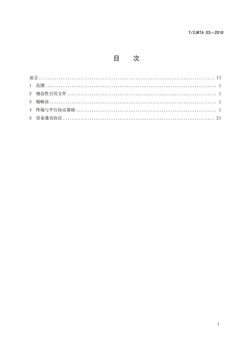 1CS03.220.20R10TZJRTA浙江省道路运输协会团体标准T/ZJRTA 03-2018道路运输车辆智能视频监控报警系统通讯协议规范Intelligent video monitoring and alarm system for road transport vehiclesCommunication protocol specification2018-11-21发布2018-12-01实施浙江省道路运输协会发布