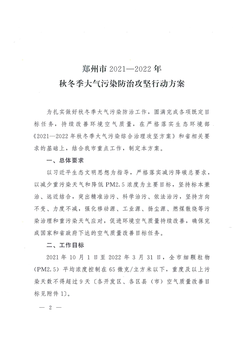 郑州市2021-2022年秋冬季大气污染防治攻坚行动方案348072@abc4个月前发布关注私信6.35MB20页043郑州市2021-2022年秋冬季大气污染防治攻坚行动方案此内容为付费资源,请付费后查看¥12¥22黄金会员免费钻石会员免费立即购买您当前未登录!建议登陆后购买,可保存购买订单付费资源 第1页 / 共20页 第2页 / 共20页 试读已结束,还剩18页,您可下载完整版后进行离线阅读 THE END标准规范 文本预览 郑政文〔2021)135号郑州市人民政府关于印发郑州市2021一2022年秋冬季大气污染防治攻坚行动方案的通知各开发区管委会,各区县(市)人民政府,市人民政府各部门,各有关单位:现将《郑州市2021一2022年秋冬季大气污染防治攻坚行动方案》印发给你们,请认真贯彻执行。2021年11月18日1 查看更多 收起部分 喜欢就支持一下吧收藏