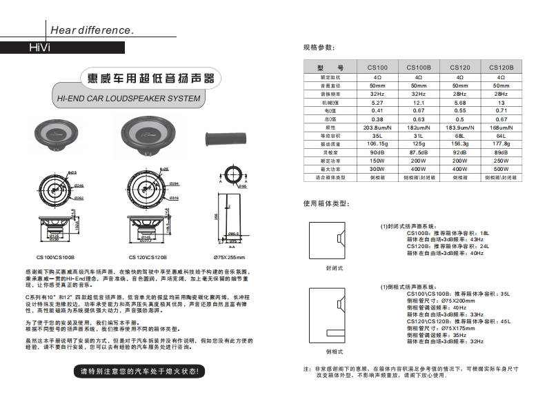 HiViHigh performance speaker fromHear The DifferenceHear The Difference惠威音响C SeriesHi-end Car Loudspeaker System品说明HiV惠威.美国HiVi Acoustics,Inc.11630 Goldring Road,Arcadia CA 91006.USATel+16269300506F9x:+16269300609HWI惠酸.中国珠海惠赋群技有限公司中国广东省珠海市张酒工业区大林山片区东成路南1号电话:0756-6268035传真:07566268006.6258052客户服务热线:400-050-9199HiViAcoustics,Ina.因设计文更等原国所带境料可能与实物不钓,想不另行通如ngaw4gfth得designchang象.nea女ation may not co向m好the practicality We Milln国nform again!
