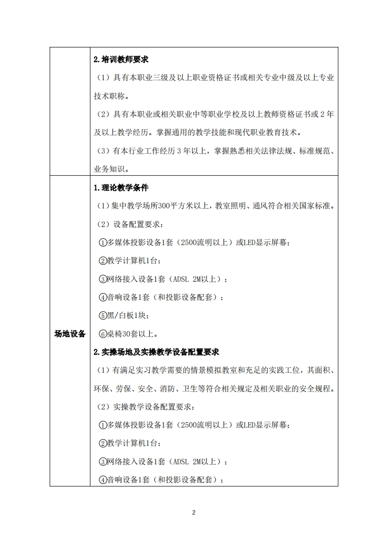 北京市朝阳区民办职业技能培训机构职业指导师培训设置标准(试行)一、职业名称:职业指导师为劳动者更好实现就业和职业生涯发展,为用人单位规范招聘和合理用人,提供咨询、指导、帮助及相关服务的人员。二、职业编码:4-07-03-01三、技术等级:职业指导师共设四个等级,分别为:四级/职业咨询协理、三级/助理职业指导师、二级/职业指导师、一级/高级职业指导师。四、基础条件:1.举办四级/职业咨询协理培训应具有本职业或相关职业教育培训经历。2.举办三级/助理职业指导师培训应具有2年以上本职业四级教育培训经历。3.举办二级/职业指导师培训应具有2年以上本职业三级教育培训经历。4.举办一级/高级职业指导师培训应具有2年以上本职业二级教育培训经历。五、设置要求:四级/职业咨询协理1.总量配置师资条件每班配备专兼职教师不少于3人。其中专职教师不少于1人,专业理论教师不少于1人,实操指导教师不少于2人。