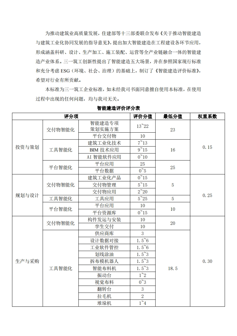 智能建造评价企业标准(指南)1.0348072@abc4个月前发布关注私信0.12MB3页021智能建造评价企业标准(指南)1.0此内容为付费资源,请付费后查看¥10¥12黄金会员免费钻石会员免费立即购买您当前未登录!建议登陆后购买,可保存购买订单付费资源 第1页 / 共3页 第2页 / 共3页 试读已结束,还剩1页,您可下载完整版后进行离线阅读 THE END标准规范 文本预览 PCTEAM三一筑工三一筑工科技股份有限公司企业标准智能建造评价企业标准(指南)1.0Intelligent construction evaluation standards编号:SYZG-QB2023-001中国XX出版社 查看更多 收起部分 喜欢就支持一下吧收藏