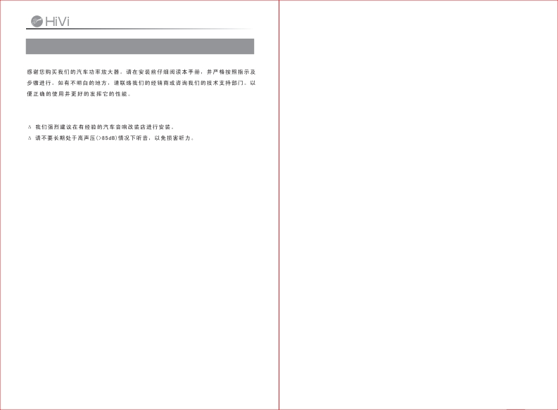 惠威汽车功率放大器(SA4 USER MANUAL)HM惠成美国HiM Acousties.he.11530 Goldring Road_Arcadia.CA 91005,USATct+162函9300606Fa3+16269300E09产品说明书M南威中国珠海惠威料技有限公同广东珠海市联鬼工业区大林山片区东成路南号电话:07566263035传商:07任-6正80066268052客户解务持线:40002091国章因设计变更等原因,所示资料可能与实物不符,怎不另行通知,Due to the re asons in thechange of design or others.productin formation contained here may not bein confomity with productitse.We reserve theright of no prior noicebefore change.