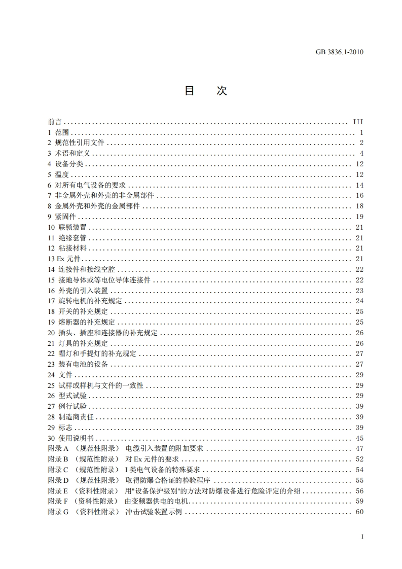ICS29.260.20K35中华人民共和国国家标准GB3836.1-2010代替GB3836.1-2000爆炸性环境第1部分:设备通用要求Explosive atmospheres Part 1:Equipment-General requirements(IEC60079-0:2007,M0D)(报批稿)(本稿完成日期:2009.08)2010-08-09发布2011-08-01实施国家质量监督检验检疫总局发布