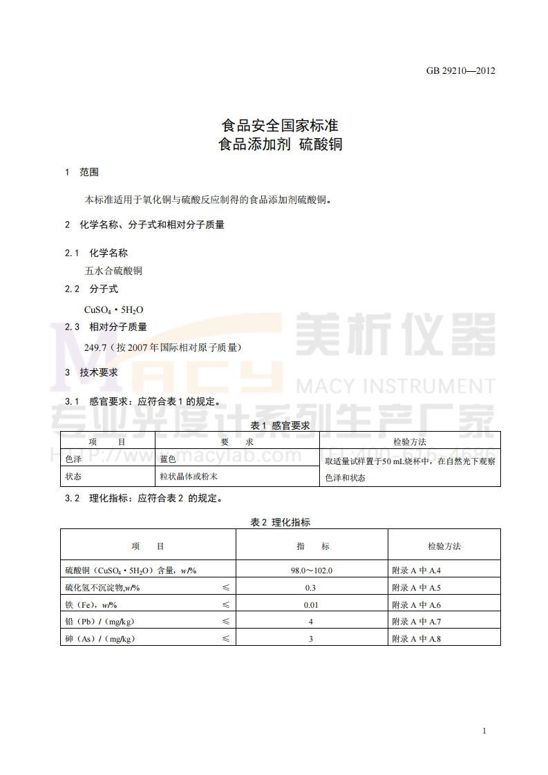 GB29210-2012食品安全国家标准食品添加剂硫酸铜(铁)348072@abc2个月前发布关注私信0.73MB10页03313GB29210-2012食品安全国家标准食品添加剂硫酸铜(铁)此内容为付费资源,请付费后查看¥15¥23黄金会员免费钻石会员免费立即购买您当前未登录!建议登陆后购买,可保存购买订单付费资源 第1页 / 共10页 第2页 / 共10页 试读已结束,还剩8页,您可下载完整版后进行离线阅读 © 版权声明文章版权归作者所有,未经允许请勿转载。THE END标准规范 文本预览 B中华人民共和国国家标准GB29210-2012食品安全国家标准仪器食品添加剂硫酸铜MACY INSTRUMENT专业光度计系列生产厂家HTTP://www.macylab.com TEL:400-616-46862012-12-25发布2013-01-25实施中华人民共和国卫生部发布 查看更多 收起部分 喜欢就支持一下吧点赞13 分享QQ空间微博QQ好友海报分享复制链接收藏