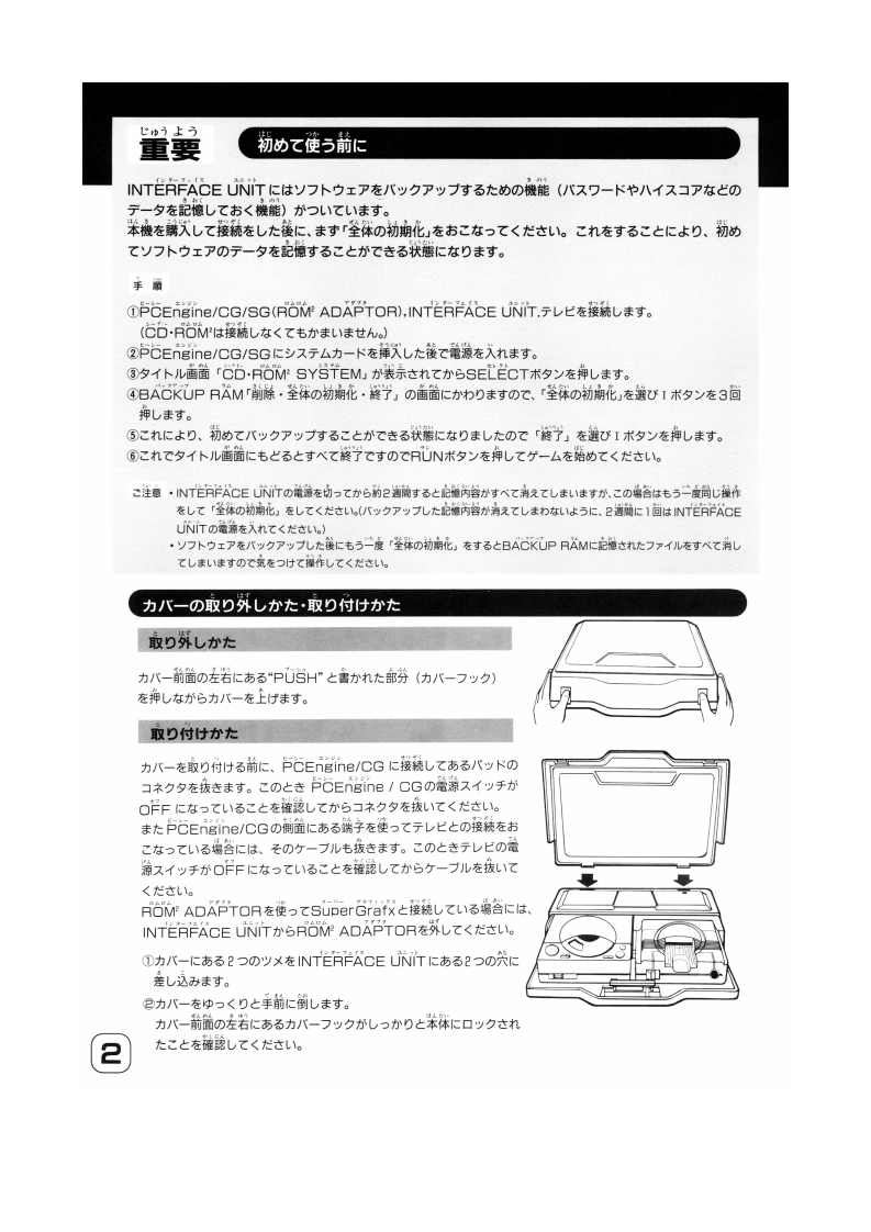 NECG回@sySTEm取圾説明書INTERFACE UNITCOREINDEX■初使5前■力八一0取的外儿抄大·取门付付抄大22■ヶ一4点七加搜了5■包少人①谓成七名办名称PCEngine/CG/SG■C口:ROM计C羹打w合24C0·R0M2D取O付时■接烧办儿护大意是,+力一·于L上仁AV入力法子莎堤合■取极L1上功注急●上AV入力满子分乱爆28■检牌扩在七思一大5●香声在于少上以月0以又于么C艳<合…9■定格写■案儿大…·C0-P0M行4又/2八之工了左李L510CG:PCEngine CoreGrafxSG:PCEngine SuperGrafxPCEngine CoreGrafx体別壳pc李.)