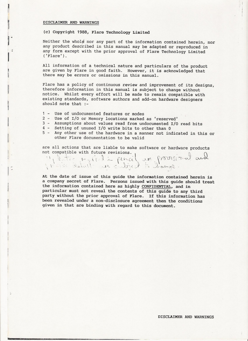 71SLIPSTREAMIIThe slipstream Computer SystemHardware Reference Guide1Version 0.01」21 November,1988Iby Martin Brennan,Ben Cheese and John Mathieson,1Copyright 1988,Flare Technology LimitedII111Flare Technology Limited,Unit o,The Paddocks Trading Estate347 Cherry Hinton Road,Cambridge CB1 4DH.LL风