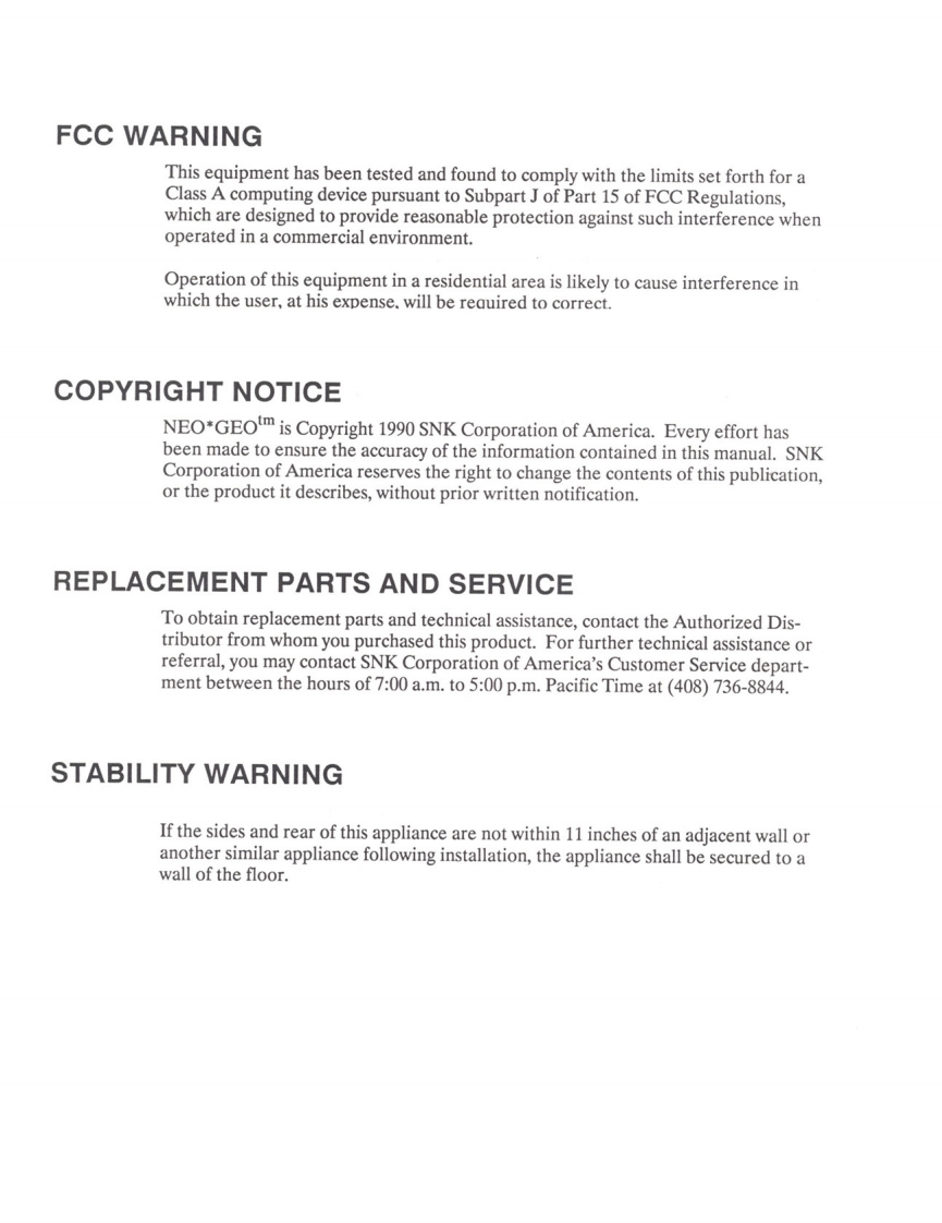 91_Neo_Geo_MVS_US-使用说明书手册348072@abc6个月前发布关注私信5.84MB16页03691_Neo_Geo_MVS_US-使用说明书手册此内容为付费资源,请付费后查看¥23¥32黄金会员免费钻石会员免费立即购买您当前未登录!建议登陆后购买,可保存购买订单付费资源 第1页 / 共16页 第2页 / 共16页 试读已结束,还剩14页,您可下载完整版后进行离线阅读 THE END说明书手册 文本预览 NEO-GEOMULTI VIDEO SYSTEMMVS-4-25OPERATION MANUALVERSION 2.JULY 1991SSNK✉ 查看更多 收起部分 喜欢就支持一下吧收藏