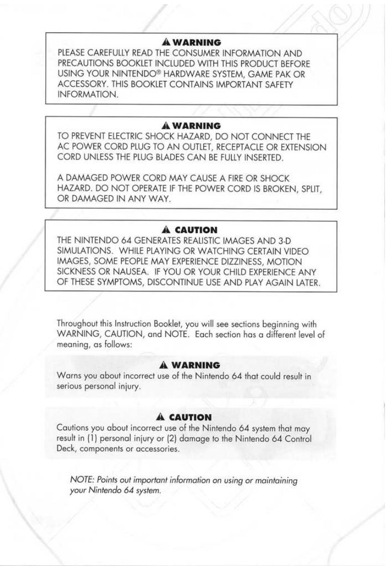NUS-S-HB-USA-4NINTENDO64How to connect theStereo AV CablePg 4Making connections using theRF Switch and Modulatorpg 7Connecting the Nintendo 64and Super NES Control DecksPg8Consumer Assistance1-800-255-3700☑NINTENDO54Instruction Booklethttp://www.replacementdocs.com