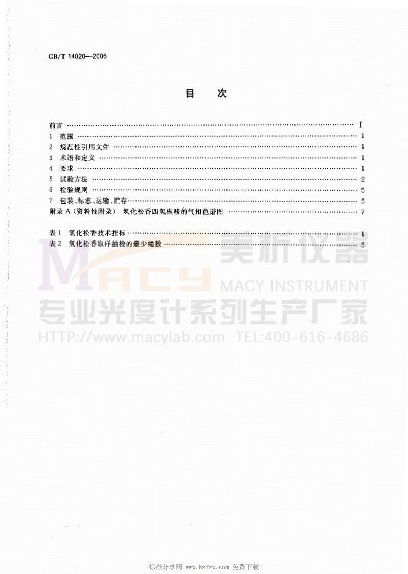 GBT14020-2006氢化松香348072@abc4个月前发布关注私信0.18MB11页050GBT14020-2006氢化松香此内容为付费资源,请付费后查看¥15¥23黄金会员免费钻石会员免费立即购买您当前未登录!建议登陆后购买,可保存购买订单付费资源 第1页 / 共11页 第2页 / 共11页 试读已结束,还剩9页,您可下载完整版后进行离线阅读 THE END标准规范 文本预览 ICS65.050B72GB中华人民共和国国家标准GB/T14020-2006代替GB/T14020一1992氢化松香所仪铝Hydrogenated rosinMACY INSTRUMENT专业光度计系列生产厂家HTTP://www.macylab.com TEL:400-616-46862006-07-12发布2006-12-01实施中华人民共和国国家质量监督检验检疫总局发布中国国家标准化管理委员会 查看更多 收起部分 喜欢就支持一下吧收藏