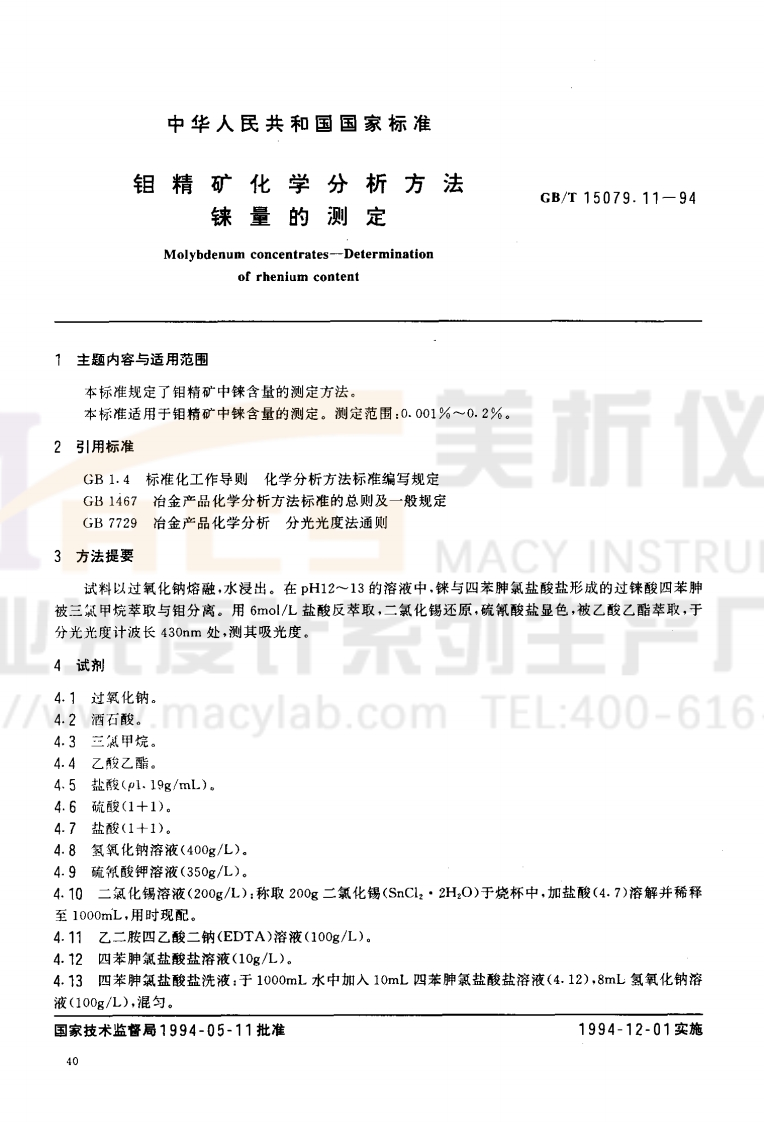 GBT15079.11-1994钼精矿化学分析方法铼量的测定348072@abc4个月前发布关注私信0.14MB5页034GBT15079.11-1994钼精矿化学分析方法铼量的测定此内容为付费资源,请付费后查看¥15¥23黄金会员免费钻石会员免费立即购买您当前未登录!建议登陆后购买,可保存购买订单付费资源 第1页 / 共5页 第2页 / 共5页 试读已结束,还剩3页,您可下载完整版后进行离线阅读 THE END标准规范 文本预览 UDC669.284:543.06D40中华人民共和国国家标准GB/T15079.1~15079.12-94钼精矿化学分析方法Method for chemical analysisof molybdenum concentratesINSTRU卫光度计系列生产「//www.macylab.com TEL:400-6161994-05-11发布1994-12-01实施国家技术监督局发布 查看更多 收起部分 喜欢就支持一下吧收藏