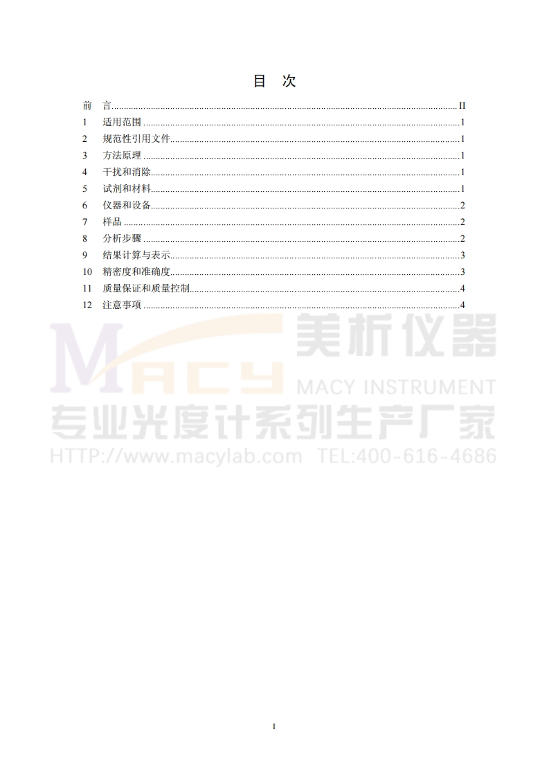 HJ中华人民共和国国家环境保护标准HJ685-2014固定污染源废气铅的测定火焰原子吸收分光光度法Stationary source emission-Determination oflead-Flame atomic absorptionspectrophotometric methodMACY INSTRUMENT专业光度(发布稿)生产厂家HTTP://www.macylabEL:400-616-4686本电子版为发布稿。请以中国环境科学出版社出版的正式标准文本为准。20141-13发布201441实施环境保护部发布