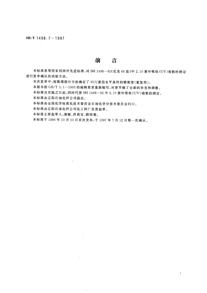 SHT1498.7-1997尼龙66盐UV指数的测定紫外分光光度法348072@abc4个月前发布关注私信94.08KB5页042SHT1498.7-1997尼龙66盐UV指数的测定紫外分光光度法此内容为付费资源,请付费后查看¥15¥23黄金会员免费钻石会员免费立即购买您当前未登录!建议登陆后购买,可保存购买订单付费资源 第1页 / 共5页 第2页 / 共5页 试读已结束,还剩3页,您可下载完整版后进行离线阅读 THE END标准规范 文本预览 1Cs71.080.30G15SH中华人民共和国石油化工行业标准sH/T1498.7-1997尼龙66盐UV指数的测定紫外分光光度法Nylon 66 salt-Determination of UV index-Ultraviolet spectrophotometric method1997-07-12发布1997-12-01实施中国石油化工总公司发布 查看更多 收起部分 喜欢就支持一下吧收藏