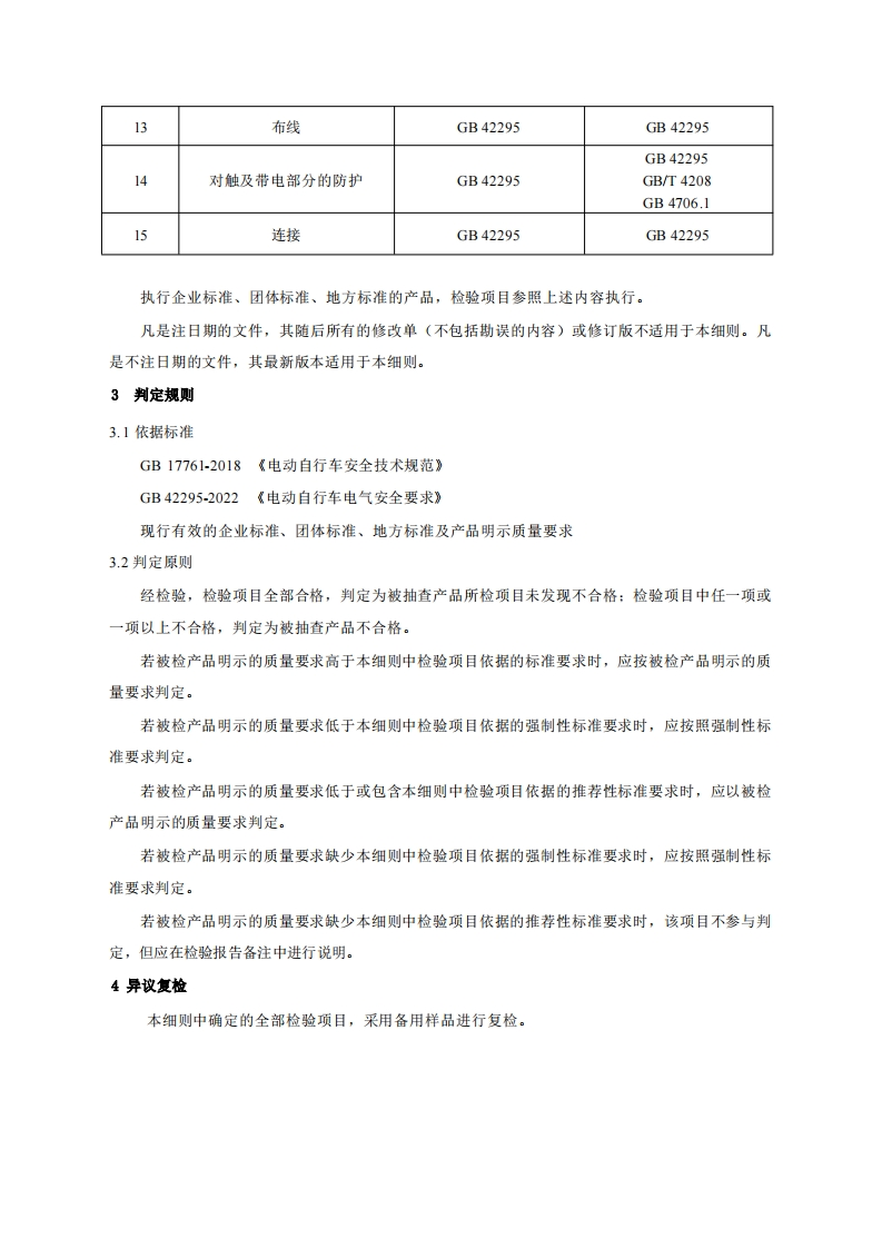 济南市电动自行车产品质量监督抽查实施细则(2025年版)1抽样1.1抽样方法以随机抽样的方式在被抽样生产者、销售者的待销产品中抽取。随机数一般可使用随机数表等方法产生。1.2抽样基数抽查样品基数满足抽样数量即可。1.3抽样数量每批次产品抽取样品2辆,其中1辆作为检验样品,1辆作为备用样品。2检验项目及检测方法表1电动自行车产品检验项目序号检验项目检验依据检验方法1车速限值GB17761GB17761GB177612制动性能(干态)GB17761GB35653整车质量GB17761GB17761GB17761结构GB17761GB35655车速提示音GB17761GB17761电气装置GB17761GB177617充电器与蓄电池GB17761GB177618尺寸限值GB17761GB177619整车标志GB17761GB17761GB1776110防火性能GB17761GB/T5169.1111标识与警示语GB42295GB4229512互认协同充电GB42295GB42295