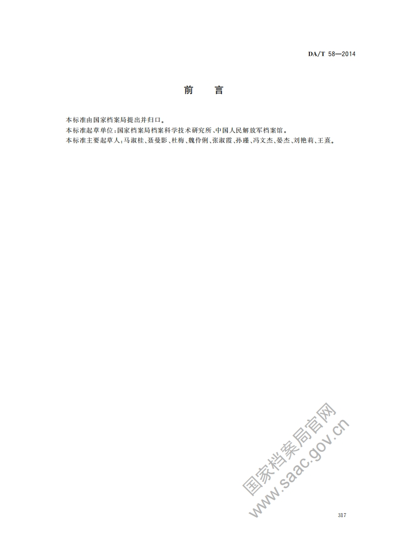 电子档案管理基本术语348072@abc4个月前发布关注私信0.78MB18页021电子档案管理基本术语此内容为付费资源,请付费后查看¥15¥23黄金会员免费钻石会员免费立即购买您当前未登录!建议登陆后购买,可保存购买订单付费资源 第1页 / 共18页 第2页 / 共18页 试读已结束,还剩16页,您可下载完整版后进行离线阅读 THE END标准规范 文本预览 1CS01.140.20A14备案号:48938一2015DA中华人民共和国档案行业标准DA/T58-2014电子档案管理基本术语General terminology for electronic records management2014-12-31发布国家档案局官网国家档案局发。6·eSMN316 查看更多 收起部分 喜欢就支持一下吧收藏