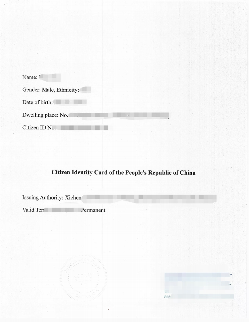 AFFIDAVITI,WUWEN GUO,translator in the City of Toronto,Province of Ontario,make oath andsay:1.I am fluent in both Chinese and English.2.I have translated the annexed document and carefully compared the translationfrom Chinese into English with regard to the following document:Citizen Identity Card of the People's Republic of China3.The said translation is,to the best of my knowledge and ability,the complete andcorrect translation of said document.SWORN before me at the City of TorontoIn the Regional Municipality of MetropolitanTorontoThiso day off66,20252,个WUWEN GUOA Notary Public in and for the)Province of OntarioA