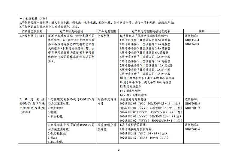 附件强制性产品认证日录描述与界定表(2020年修订)说明1对于电气电子产品,除电信终端设备,电焊机、防爆电气,适用范困仅限于可直接或问接连接到大于3V(直流或交流有效值)供电电源的产品。2对于电气电子产品,除车载移动用户终端、防爆电气或特别说明外,专为汽车及摩托车,火车、船加、飞机设计、制造和使用的、具有专门设计和安装结构的产品不在CC℃认证范困内,3具有两种或两种以上强制性产品认证目录内功能和用论的多功能产品,以产品的主要功能和主要使用目的进行归类。多功能产品应符合主要功能产品的适用标准及认证实施规则要求,同时兼顾其他功能产品对应的适用标准及认证实施规则要求,4适用产品界定应当结合“对产品种类的描述”和“对产品适用范困的描述或列举”及“说明”等内容,并以此判定产品是否属于认证范围。5产品列举不一定包括所有可能存在的产品名称,未列举的产品可根据具体情况参照相应描迷界定,6*所标记产品为实施自我声明程序A(自选实验室型式试验+自我声明)的产品,◆◆所标记产品为实施自我声明程序B(指定实验室型式试验+自我声明)的产品,1