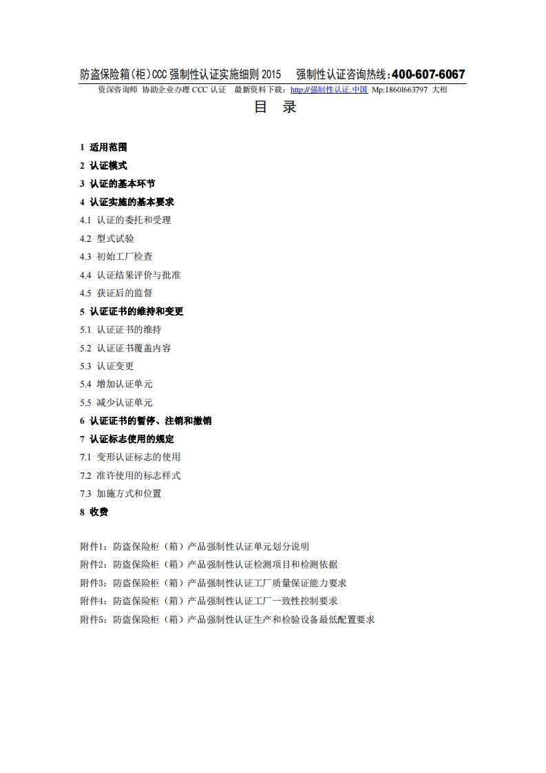 防盗保险柜(箱)产品CCC强制性认证实施细则2015版348072@abc2个月前发布关注私信0.26MB18页03913防盗保险柜(箱)产品CCC强制性认证实施细则2015版此内容为付费资源,请付费后查看¥15¥23黄金会员免费钻石会员免费立即购买您当前未登录!建议登陆后购买,可保存购买订单付费资源 第1页 / 共18页 第2页 / 共18页 试读已结束,还剩16页,您可下载完整版后进行离线阅读 © 版权声明文章版权归作者所有,未经允许请勿转载。THE END标准规范 文本预览 防盗保险箱(柜)CCC强制性认证实施细则2015强制性认证咨询热线:400-607-6067资深咨询师协助企业办理CCC认证最新资料下载:hp强制性认证中国Mp:18601663797大相编号:CNCA一10C一054:2009安全技术防范产品强制性认证实施规则防盗保险柜(箱)产品2009-01-07发布2009-03-01实施中国国家认证认可监督管理委员会发布 查看更多 收起部分 喜欢就支持一下吧点赞13 分享QQ空间微博QQ好友海报分享复制链接收藏