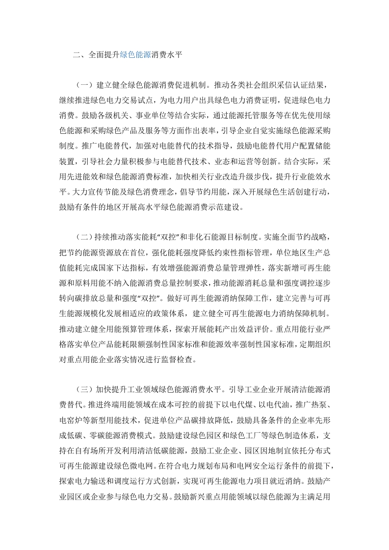 福建省发展和改革委员会关于福建省完普能源绿色低碳转型体制机制和政策措施的意见各设区市人民政府、平谭综合实验区管委会,省人民政府有关部门、有关直属机构,有关能源企业:为贯彻落实《中共中央、国务院关于完整准确全面贯彻新发展理念做好碳达峰碳中和工作的意见》《2030年前碳达峰行动方案》,根据《国家发展改革委、国家能源局关于完善能源绿色低碳转型体制机制和政策措施的意见》要求,加快推进能源绿色低碳转型,全面推进高质量发展,现就完善能源绿色低碳转型的体制机制和政策措施提出如下意见。一、总体要求以习近平新时代中国特色社会主义思想为指导,全面贯彻落实党的二十大精神,深入贯彻习近平生态文明思想,坚持稳中求进、循序渐进、持续推进,立足新发展阶段,完整、准确、全面贯彻新发展理念,积极服务并融入新发展格局,落实“四个革命、一个合作”能源安全新战略,坚持系统观念,立足省情实际,统筹发展与安全、稳增长和调结构,引导产业结构和能源消费结构调整,优化能源绿色低碳转型路径,构建智慧高效能源系统,深化能源领域体制机制改革创新,为全方位推进高质量发展、科学有序推动如期实现碳达峰碳中和目标提供有力保障。“十四五"时期,基本建立推进能源绿色低碳发展的制度框架,能源绿色低碳循环发展的体系初步形成,重点行业能源利用效率大幅提升,能源绿色低碳发展政策、标准、市场和监管综合体系初步形成。到2030年,基本建立完整的能源绿色低碳发展基本制度和政策体系,形成非化石能源既基本满足能源需求增量又规模化替代化石能源存量、能源安全有效供应和节能高效利用并重的能源生产消费格局。