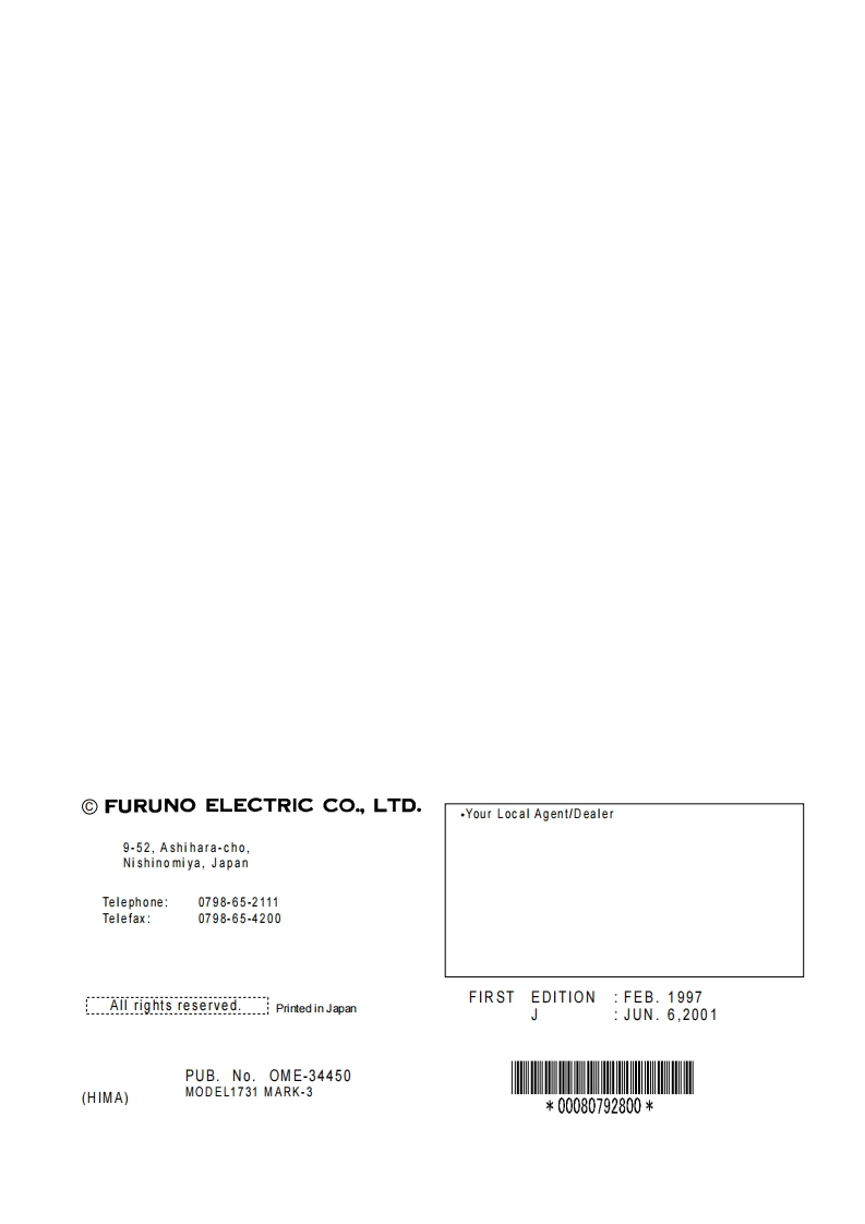 古野FURUNO-1731mk3-操作说明手册操作手册348072@abc4个月前发布关注私信3.57MB83页041古野FURUNO-1731mk3-操作说明手册操作手册此内容为付费资源,请付费后查看¥15¥23黄金会员免费钻石会员免费立即购买您当前未登录!建议登陆后购买,可保存购买订单付费资源 第1页 / 共83页 第2页 / 共83页 试读已结束,还剩81页,您可下载完整版后进行离线阅读 THE END说明书手册 文本预览 FURUUNOOPERATOR'S MANUALMARINE RADARMODEL MODEL 1731 MARK-3FURUNO ELECTRIC CO.,LTD.NISHINOMIYA,JAPAN 查看更多 收起部分 喜欢就支持一下吧收藏