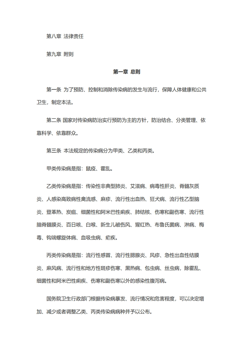 中华人民共和国传染病防治法(1989年2月21日第七届全国人民代表大会常务委员会第六次会议通过2004年8月28日第十届全国人民代表大会常务委员会第十一次会议第一次修订2004年8月28日中华人民共和国主席令第17号公布根据2013年6月29日第十二届全国人民代表大会常务委员会第3次会议通过2013年6月29日中华人民共和国主席令第5号公布自公布之日起施行的《全国人民代表大会常务委员会关于修改〈中华人民共和国文物保护法〉等十二部法律的决定》第二次修正)全文目录第一章总则第二章传染病预防第三章疫情报告、通报和公布第四章疫情控制第五章医疗救治第六章监督管理第七章保障措施