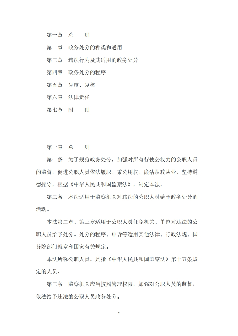 中华人民共和国公职人员政务处分法发文单位:全国人民代表大会常务委员会文号:中华人民共和国主席令第四十六号效力范围:全文有效发文日期:2020-06-20生效日期:2020-07-01《中华人民共和国公职人员政务处分法》已由中华人民共和国第十三届全国人民代表大会常务委员会第十九次会议于2020年6月20日通过,现予公布,自2020年7月1日起施行。中华人民共和国主席习近平2020年6月20日中华人民共和国公职人员政务处分法(2020年6月20日第十三届全国人民代表大会常务委员会第十九次会议通过)目录1